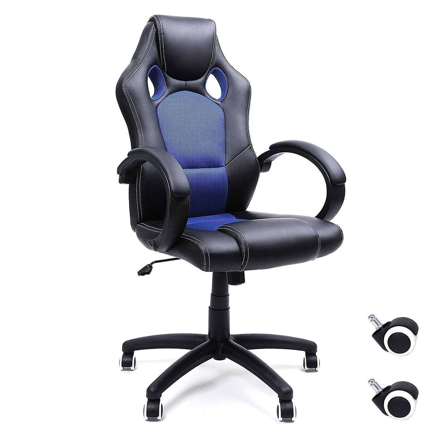 Staples Bonded Leather Racing Gaming Chair Black And Blue 51464 Cc